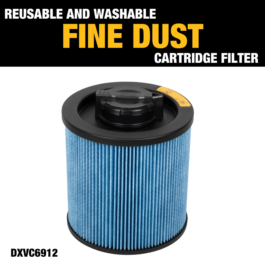 The DeWalt DXVC6912 Fine Dust cartridge filter is designed to take on both wet and dry pick-up. The high-efficiency filter material is built to take on tough jobs like cement dust, drywall dust, debris, and more. This filter is washable and reusable.