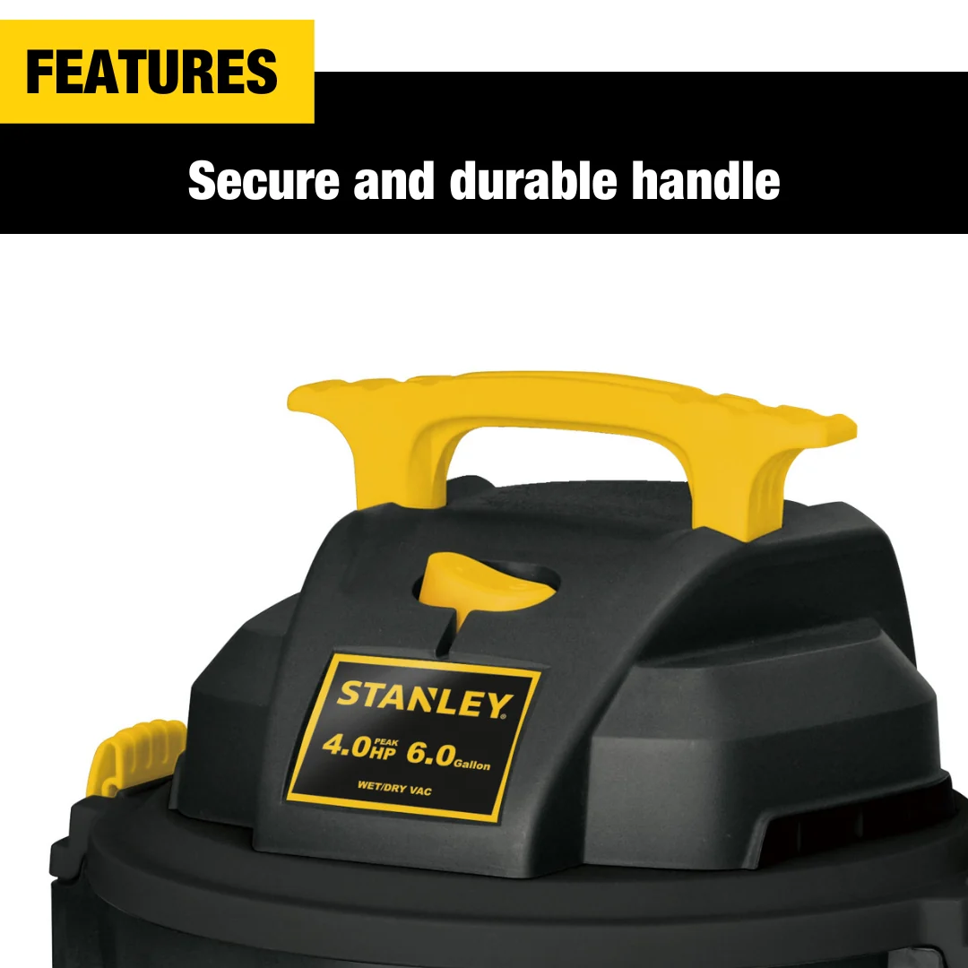 Stanley's SL18116P 6-Gallon*, 4.0-Peak HP** wet/dry vac, with a powerful heavy duty motor for industry leading performance, provides maximum suction power for heavy duty pickup.